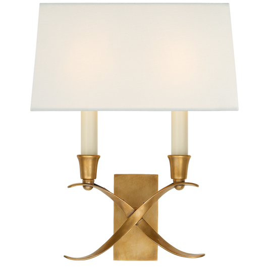 Actuellement ÉpuiséApplique Cross Bouillotte Small Antique-Burnished Brass with Linen Shade