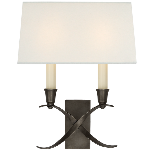 Actuellement ÉpuiséApplique Cross Bouillotte Small Bronze with Linen Shade