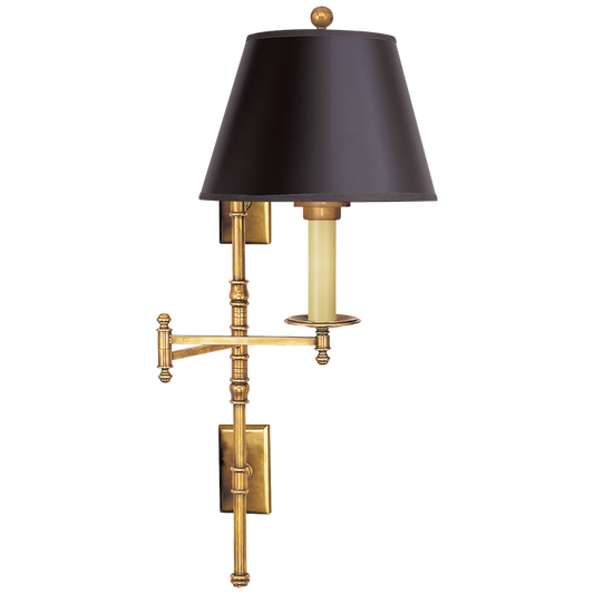 Applique Dorchester Double Backplate Articulée Antique-Burnished Brass with Black Paper Shade