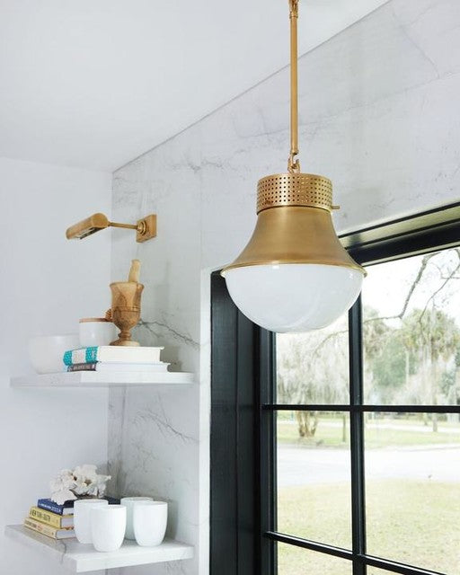 Applique Carew Suspension Linear Antique-Burnished Brass with White Glass