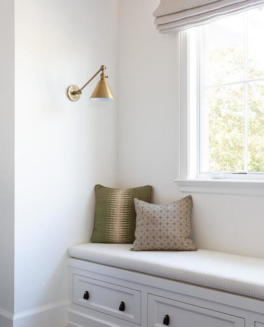 Applique Dorchester Double Backplate Articulée Antique-Burnished Brass with Silk Crown Shade