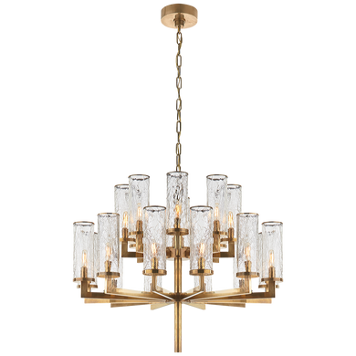 Actuellement ÉpuiséLustre Liaison Double - Laiton et Verre Craquelé
