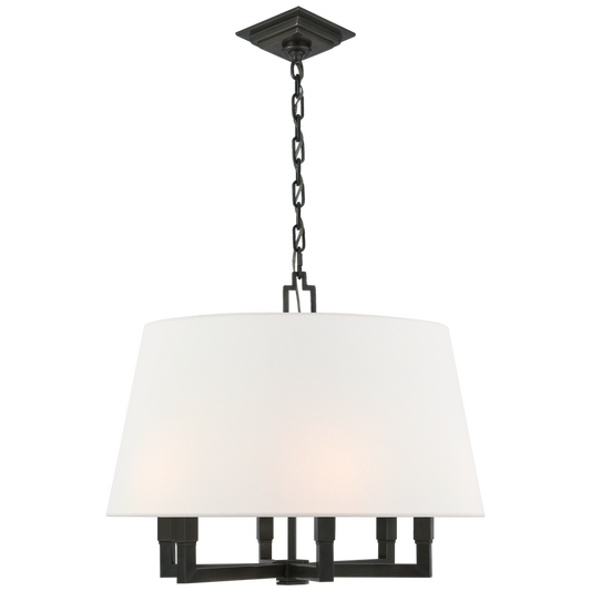 Lustre Griffin Large Staggered Tail Bronze and Chocolate Leather with Linen Shades