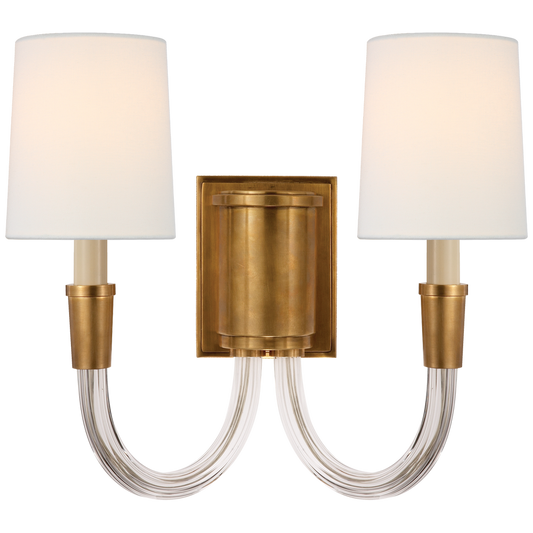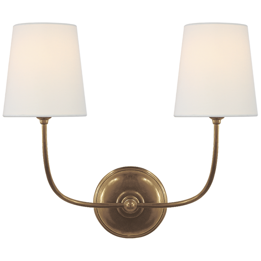 Vendome Doppelte handpolierte Wandleuchte aus antikem Messing mit Leinenschirmen