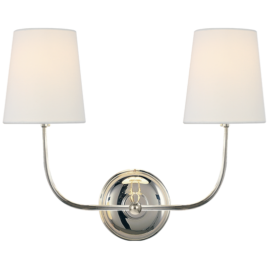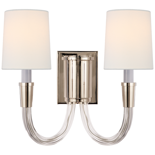 Vivian Doppel-Wandleuchte aus poliertem Nickel mit Leinenschirmen