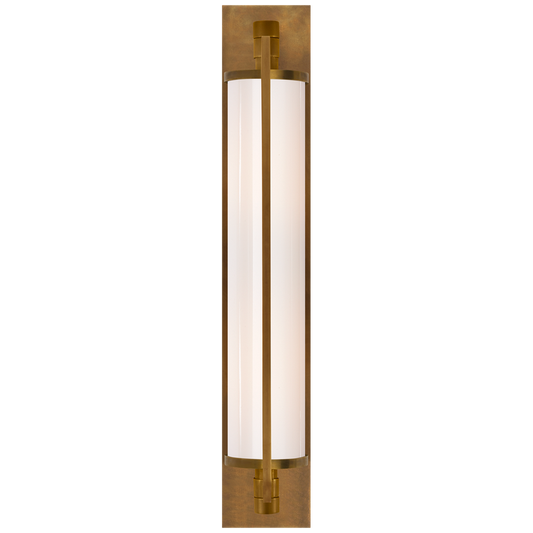 Selecta Lange Wandleuchte aus Bronze und handpoliertem antikem Messing mit weißem Glas
