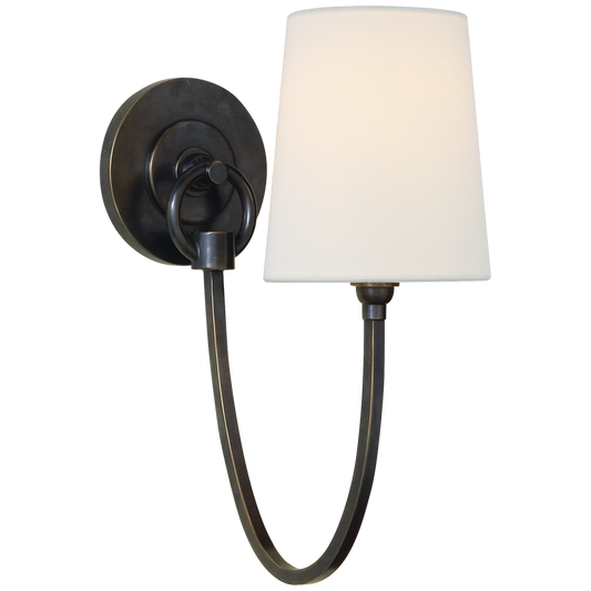 Reed Single Bronze Wandleuchte mit Leinenschirm
