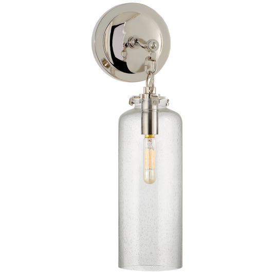 Wandleuchte Katie, klein, Zylinderform, poliertes Nickel mit Saatglas