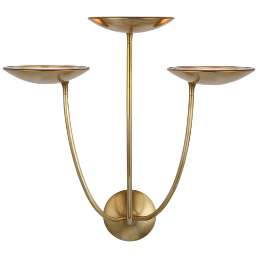 Große dreifache Wandlampe Keira aus handpoliertem antikem Messing