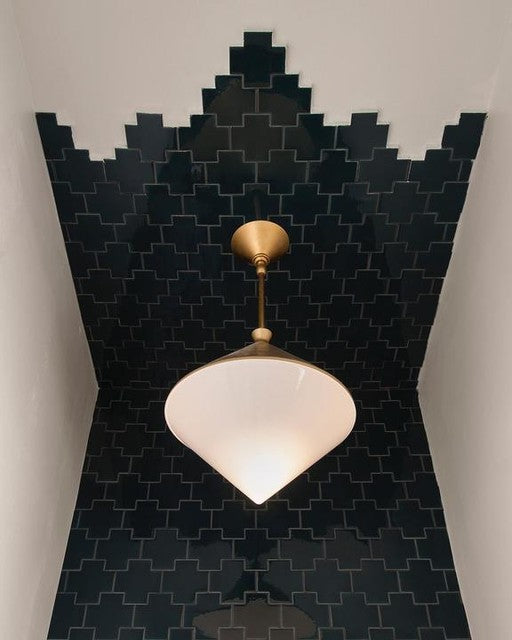 Lucerne One Light Small Pendelleuchte in Mitternachtsschwarz und brüniertem Messing mit weißem Glas