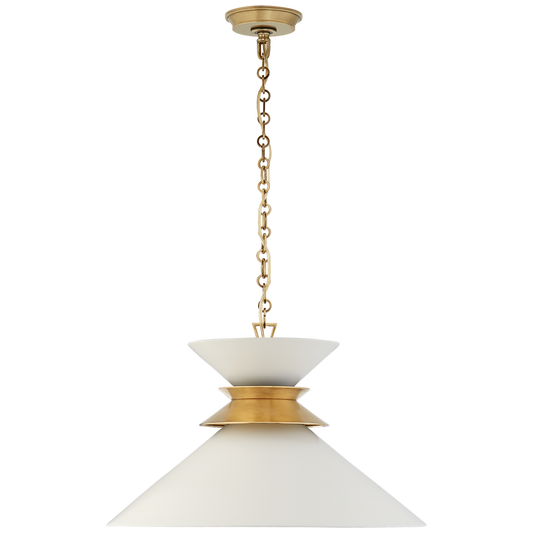 Piatto Pendelleuchte, groß, handpoliertes Antikmessing mit weißem Gipsschirm