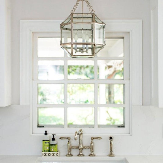 Morris, kleine Laterne aus poliertem Nickel mit klarem Glas