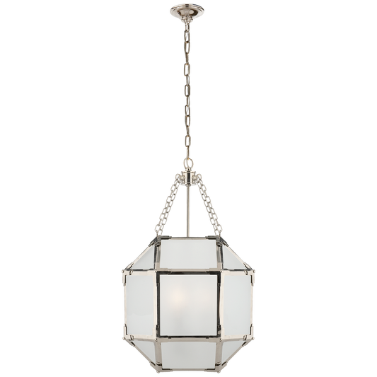 Morris Laterne, klein, poliertes Nickel mit Milchglas
