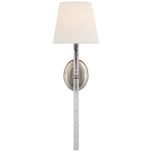 Abigail XL Wandleuchte aus poliertem Nickel mit Leinenschirm