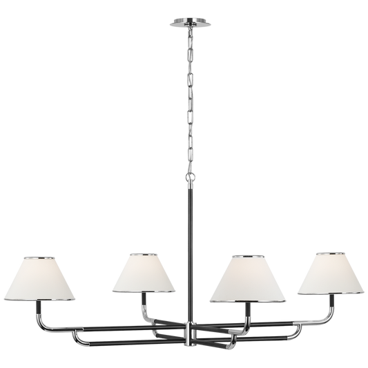 Rigby Grande Kronleuchter, poliertes Nickel und Ebenholz mit Leinenschirm