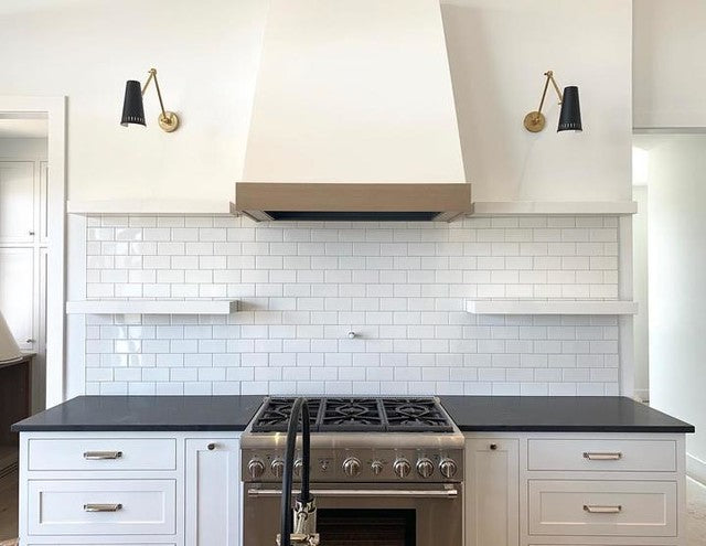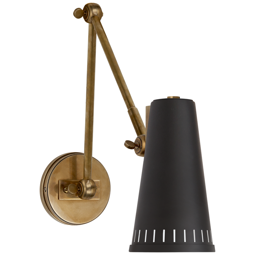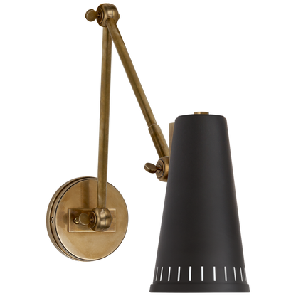 Antonio Wandleuchte, verstellbar, zweiarmig, handpoliertes Antikmessing mit mattschwarzem Schirm