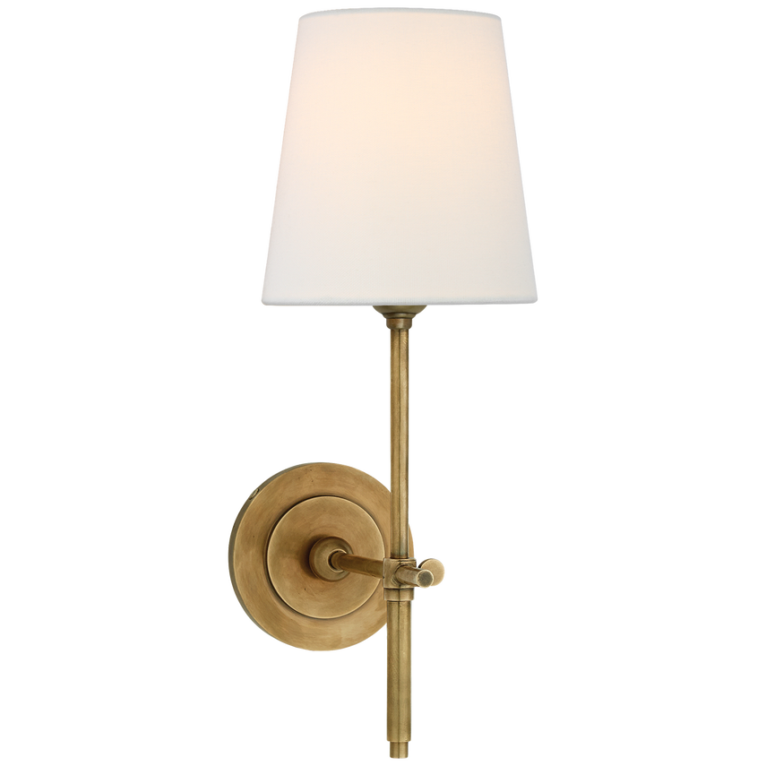 Bryant Wandleuchte aus handpoliertem antikem Messing mit Leinenschirm