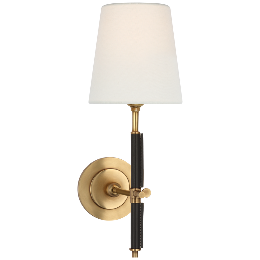Wandleuchter aus handpoliertem antikem Messing und schokoladenbraunem Leder von Bryant
