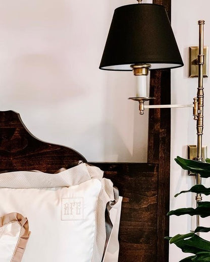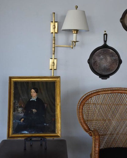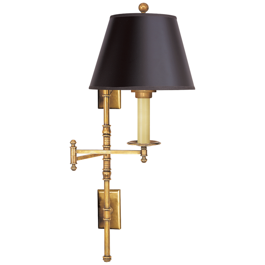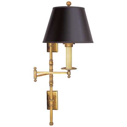 Dorchester Antik-Schwenkarm aus brüniertem Messing mit doppelter Rückplatte und schwarzem Papierschirm