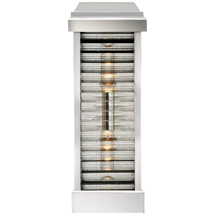 Dunmore Wandleuchte aus gebogenem Glas mit Lamellen, poliertes Nickel mit klarem geripptem Glas