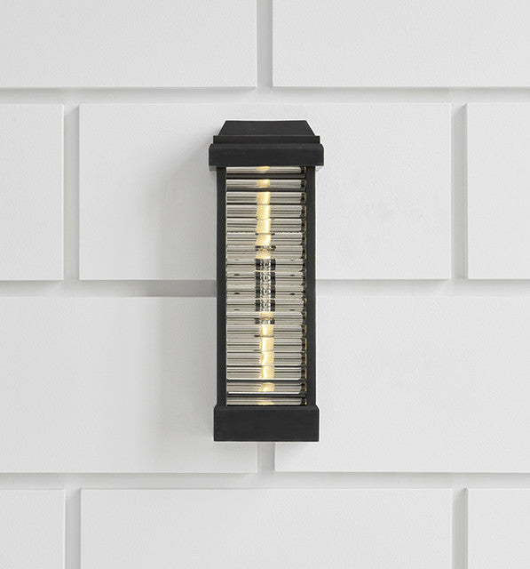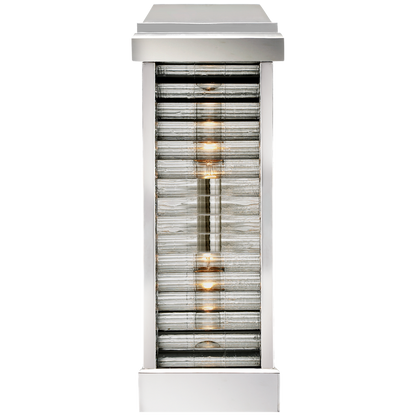 Dunmore Wandleuchter aus poliertem Nickel mit Lamellen und klarem geripptem Glas
