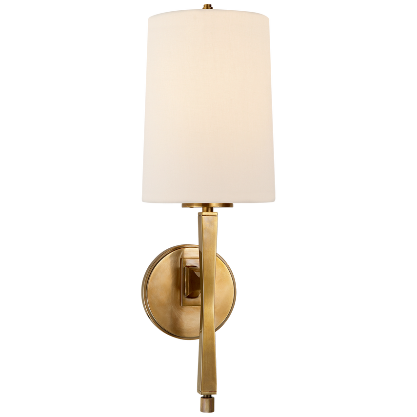 Edie Wandleuchte aus handpoliertem Antikmessing mit Leinenschirm