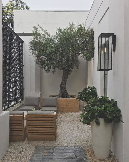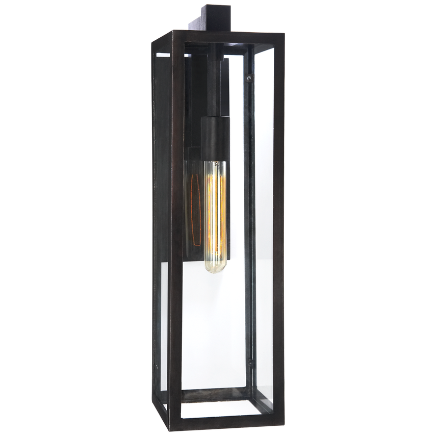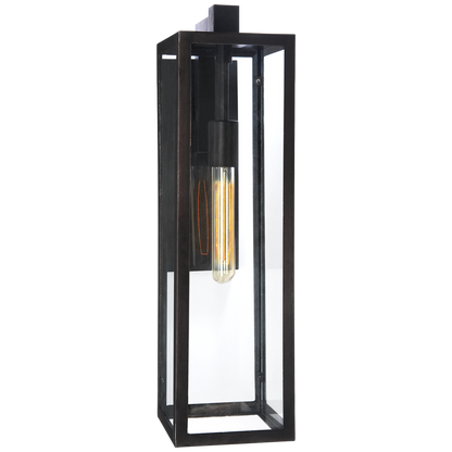 Fresno Wandleuchte mit Rahmen aus langem gealtertem Eisen mit klarem Glas