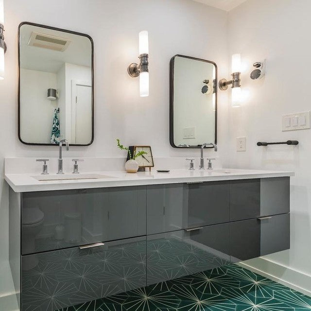 Graydon Doppelte Badezimmer-Wandleuchte, Bronze mit weißem Glas