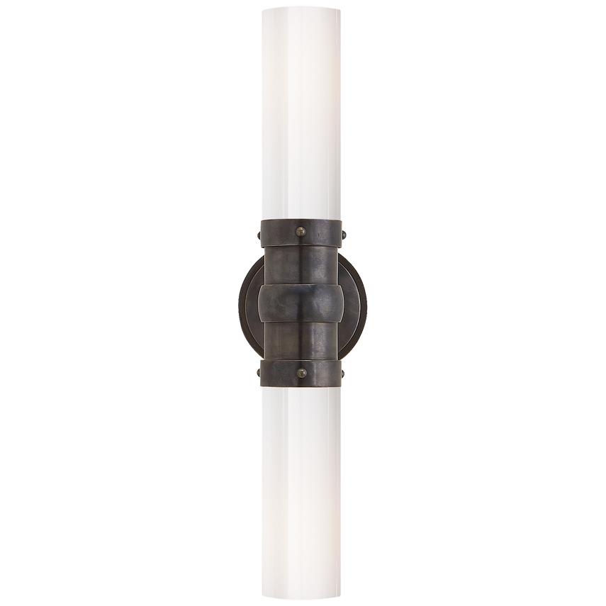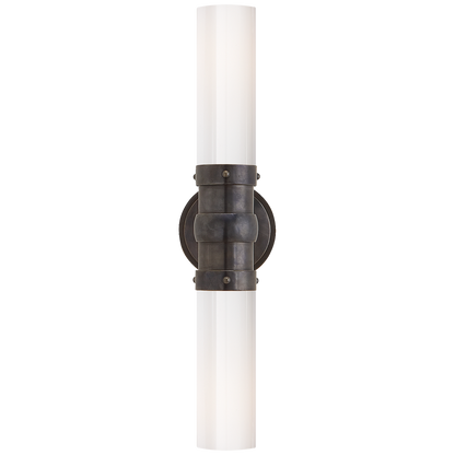 Graydon Doppelbadezimmerleuchte in Bronze mit weißem Glas