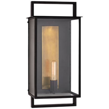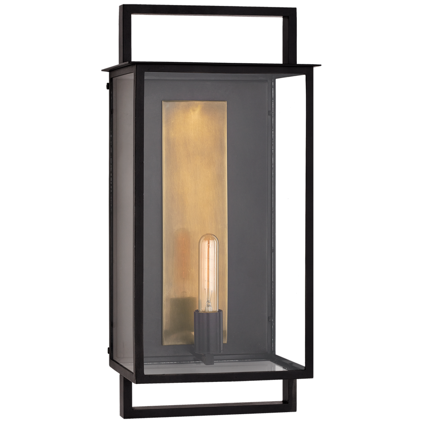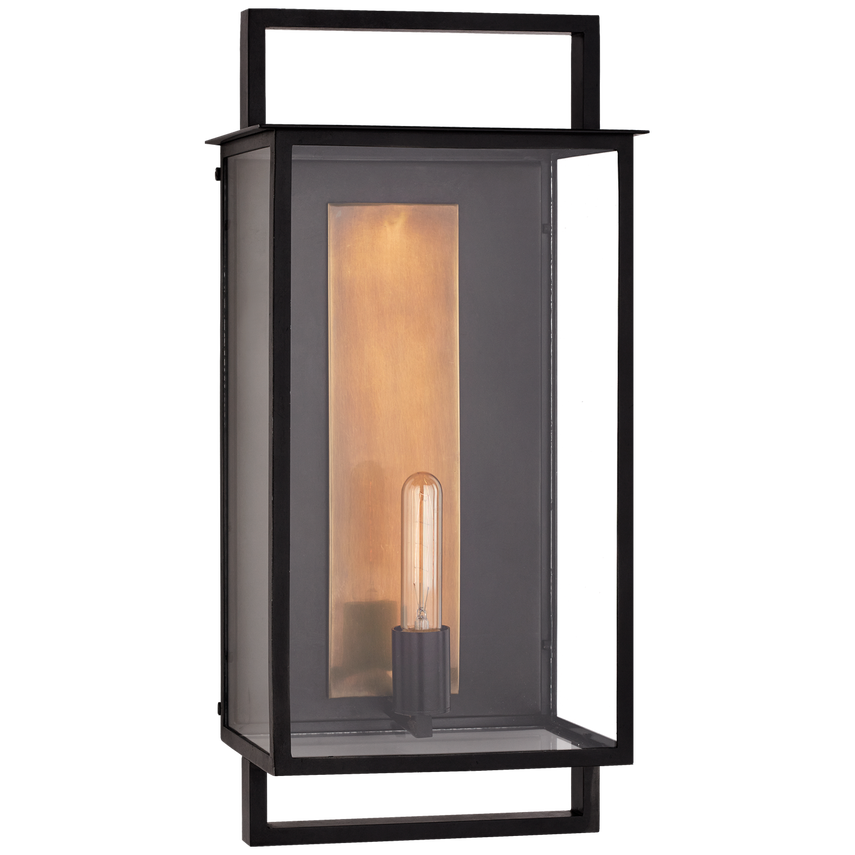 Halle Große Laternen-Wandleuchte aus gealtertem Eisen und klarem Glas