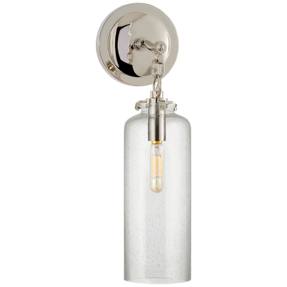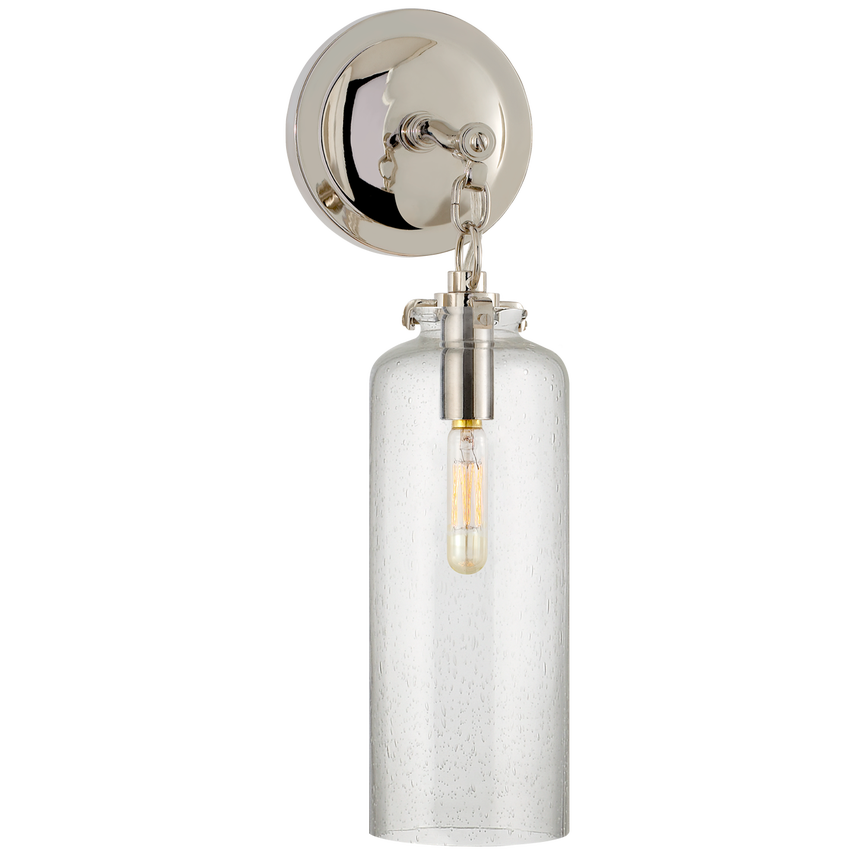 Katie, kleine zylindrische Wandleuchte aus poliertem Nickel mit Saatglas