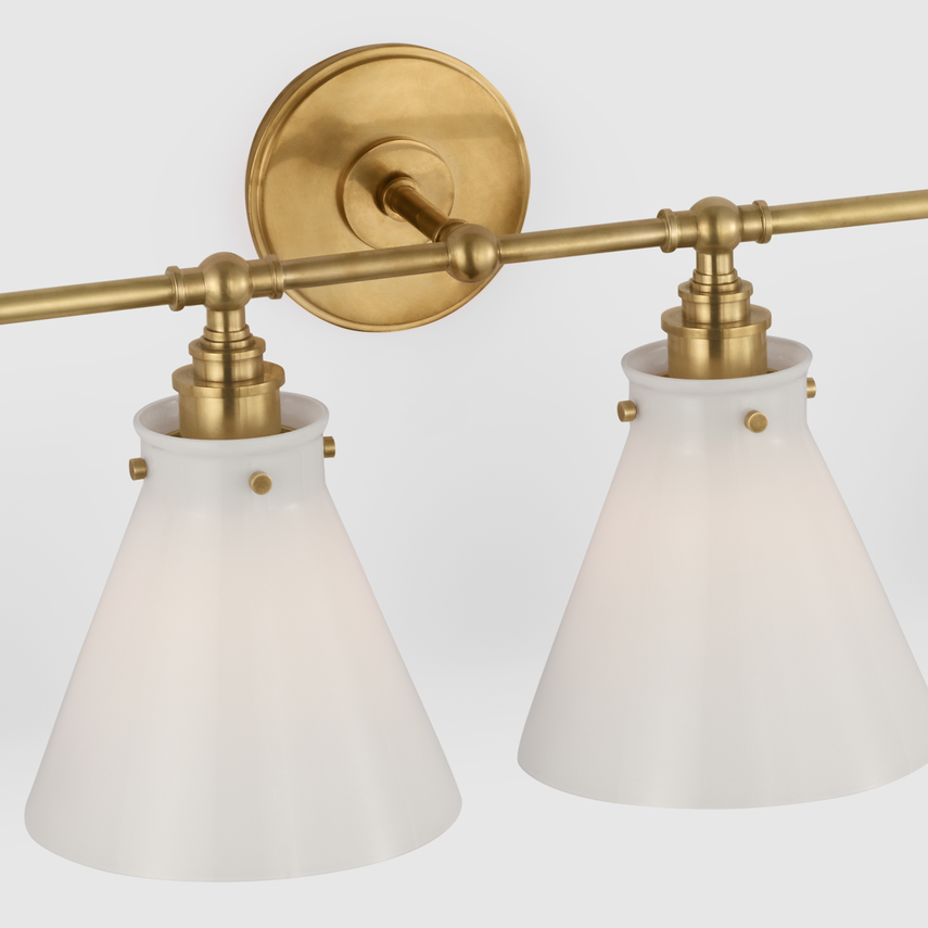 Industrieller Minimalismus trifft auf klare Linien in der Parkington-Serie von Chapman & Myers. Inspiriert von klassischen Bibliothekslampen zeichnen sich die Glas- und Metallsilhouetten durch markante architektonische Details aus, die Wandleuchten, Bibliothekslampen, Badezimmerbars, Lampen und Pendelleuchten aufwerten. Diese vielseitige Serie verleiht jedem Raum und jedem Übergangsbereich im Haus zeitlose Eleganz.