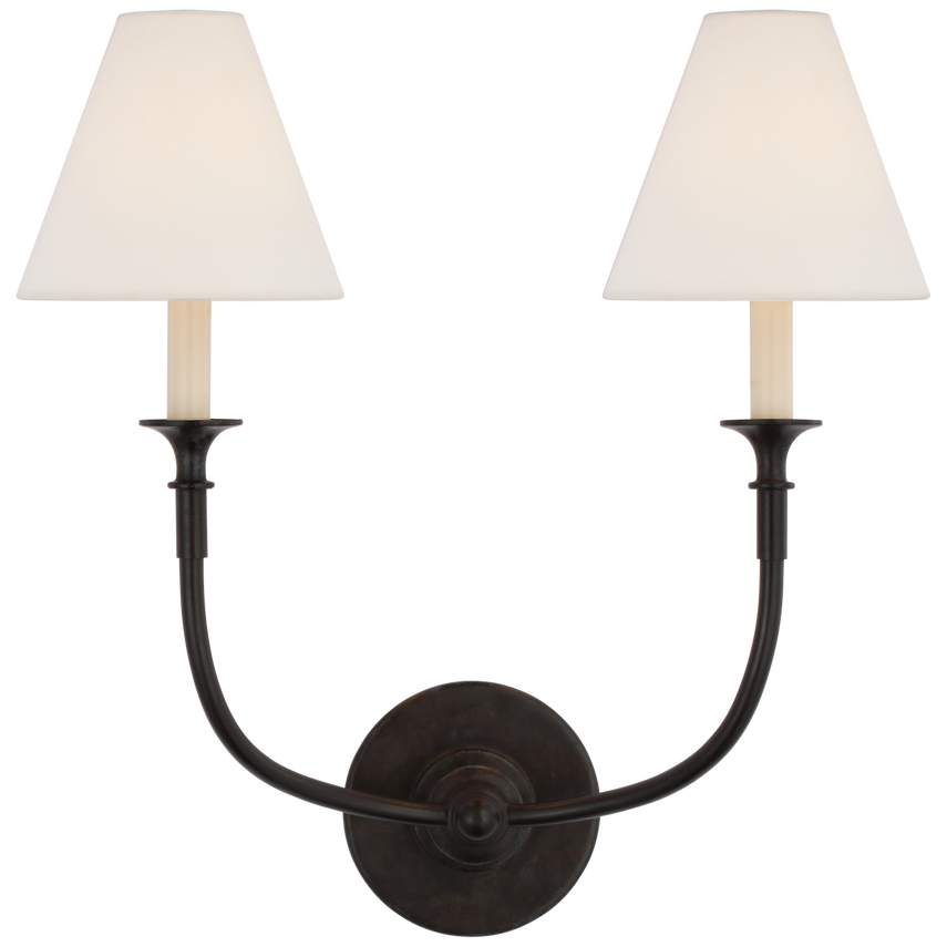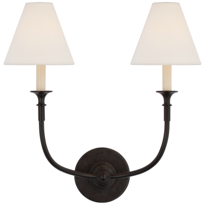 Piaf Wandleuchte Doppelt gealtertes Eisen mit Leinenschirmen