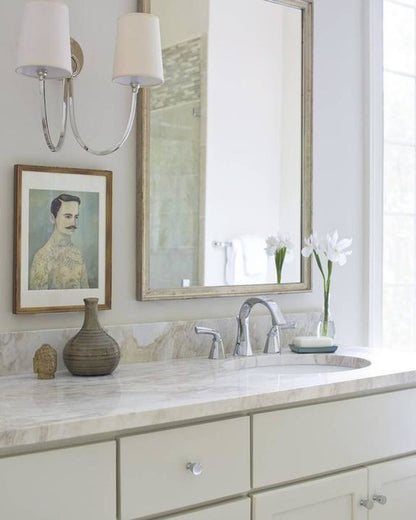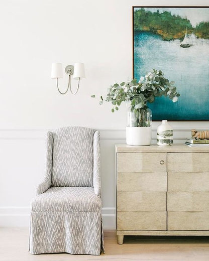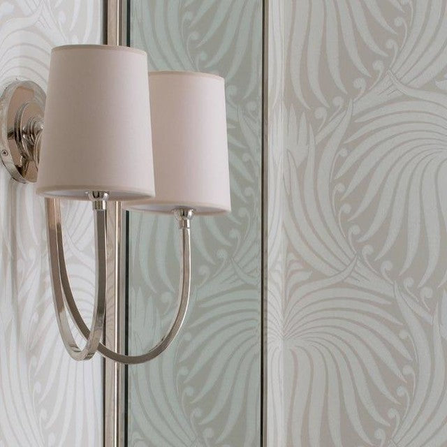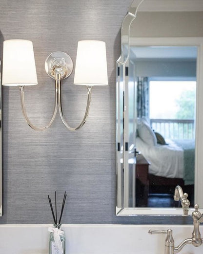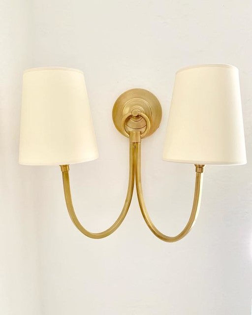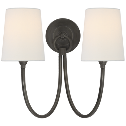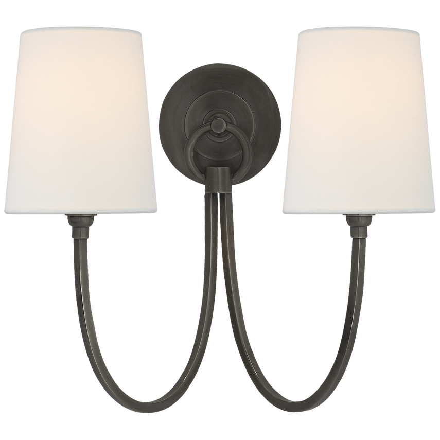 Doppelte Wandleuchte Reed aus Bronze mit Leinenschirmen
