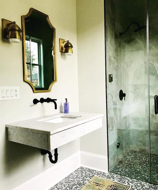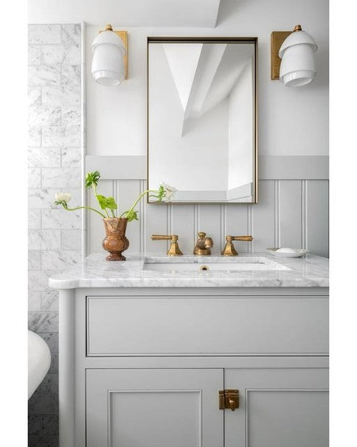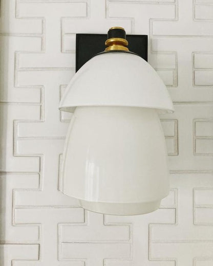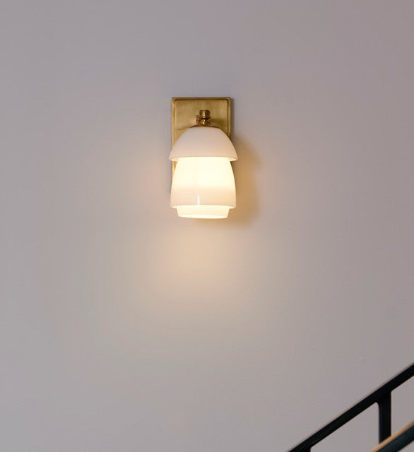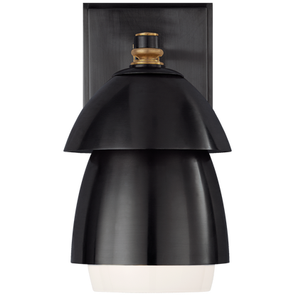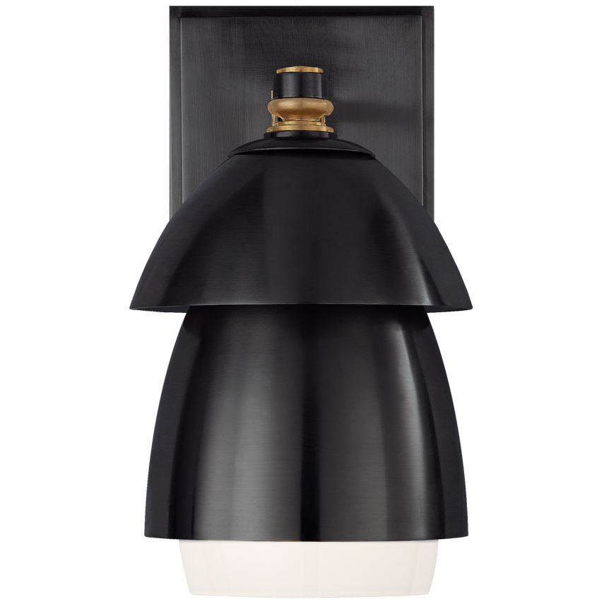 Whitman Kleine Wandleuchte aus Bronze und handpoliertem antikem Messing mit Lampenschirm aus Bronze und weißem Glas