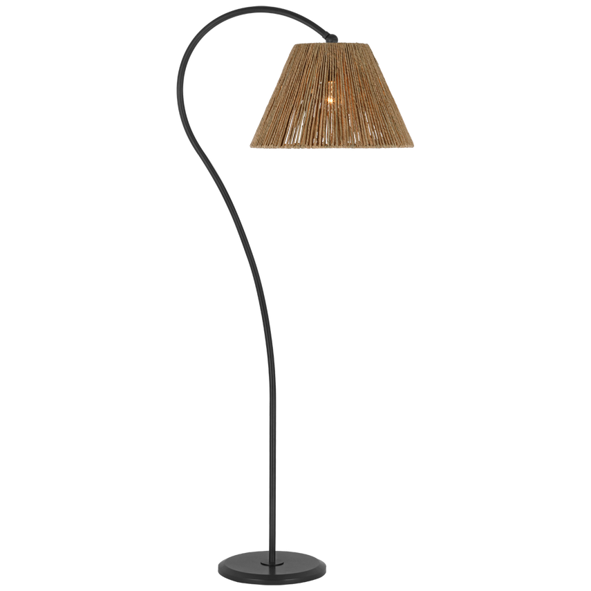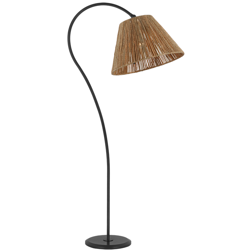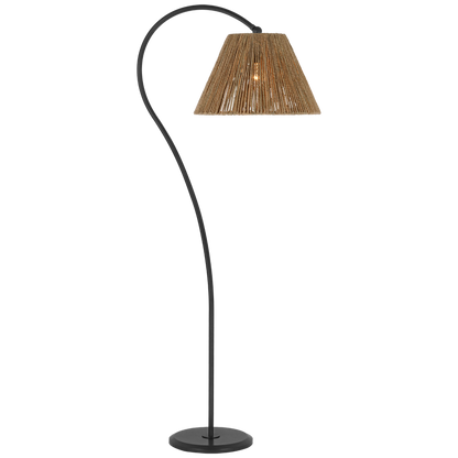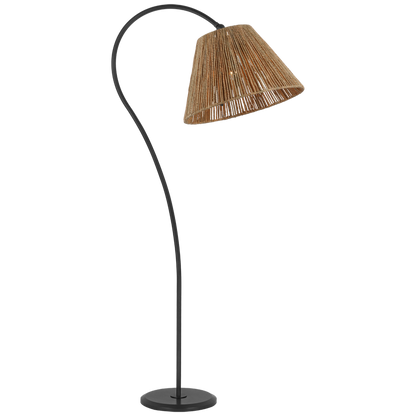 Dume Große gewölbte Stehlampe aus gealtertem Eisen mit natürlichem Abaca-Schirm