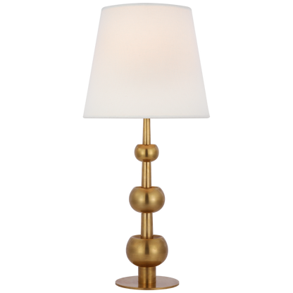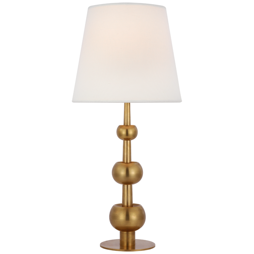 Comtesse, mittelgroße Dreifach-Tischlampe, handpoliertes Antikmessing mit Leinenschirm