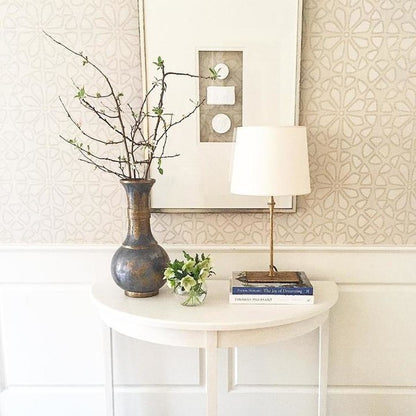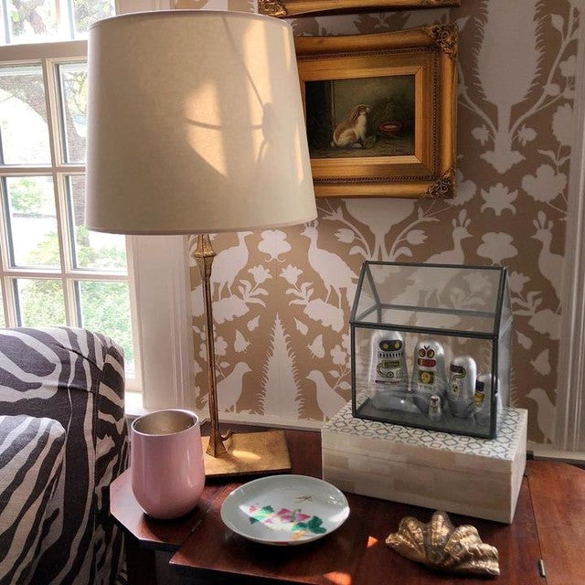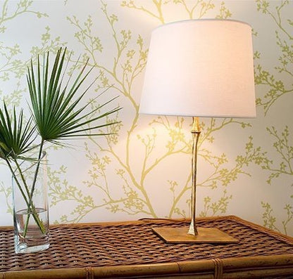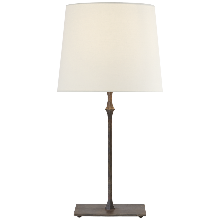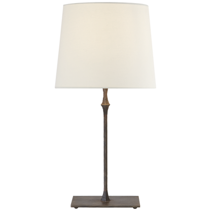 Dauphine Nachttischlampe aus gealtertem Eisen mit Leinenschirm