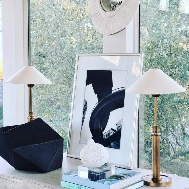 Hargett Buffetlampe aus Bronze mit Leinenschirm