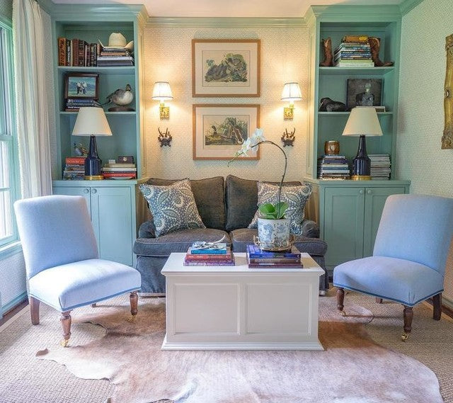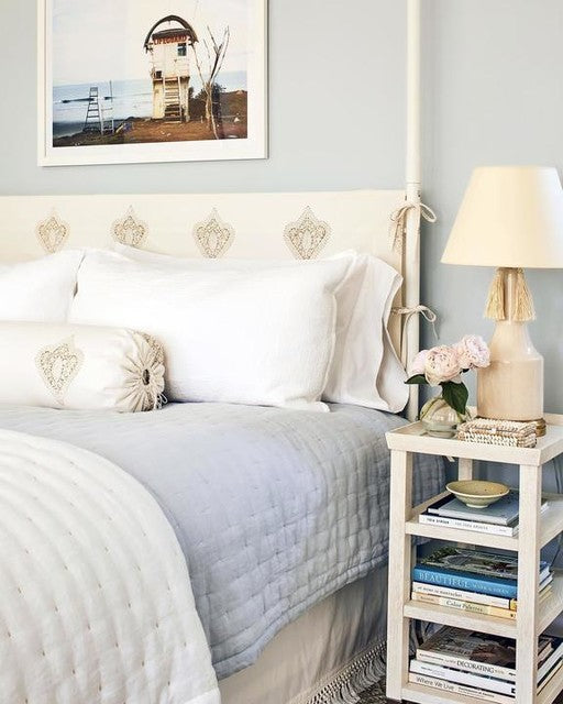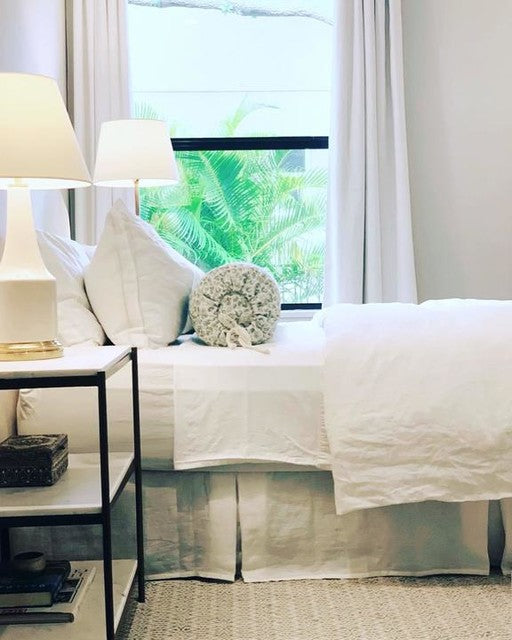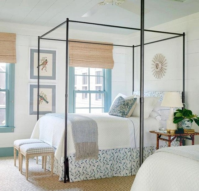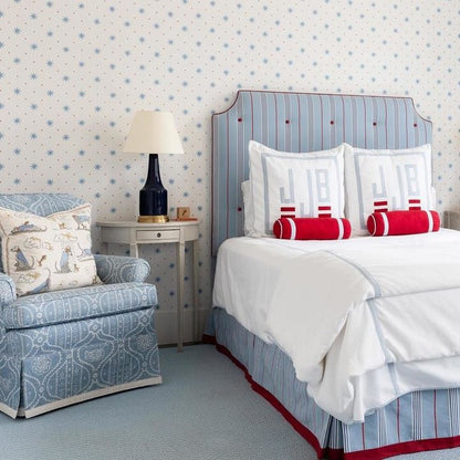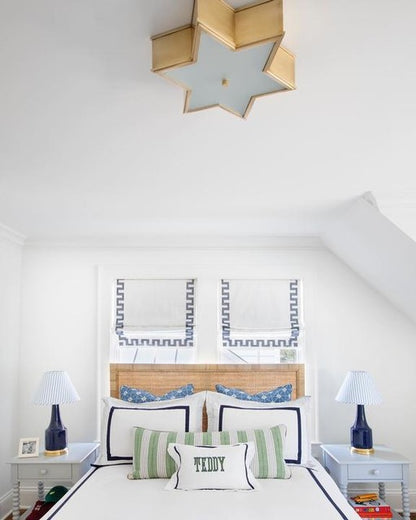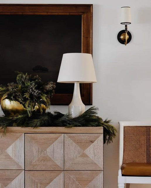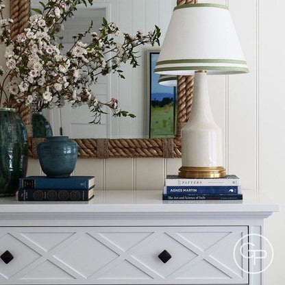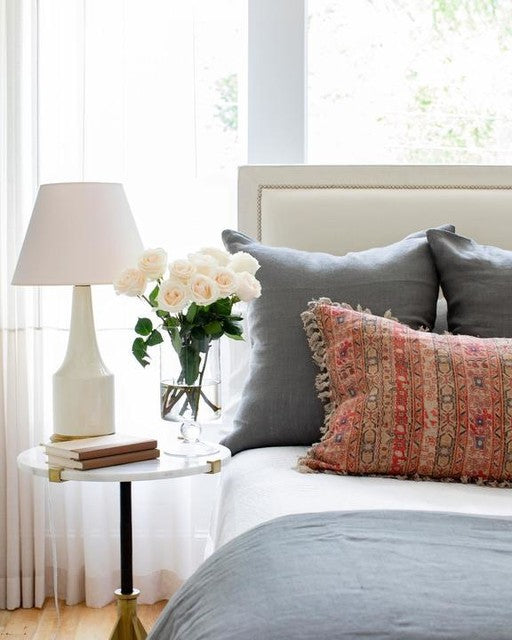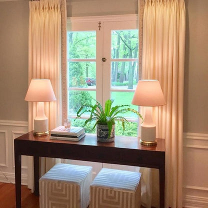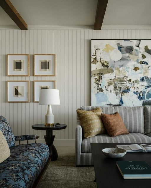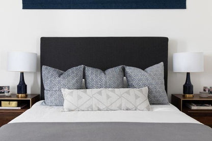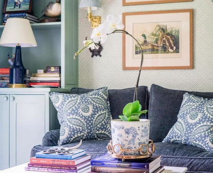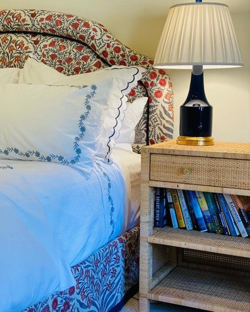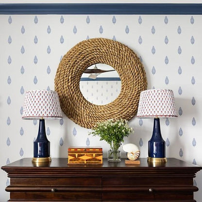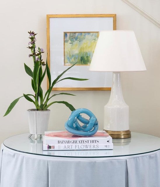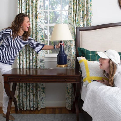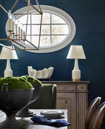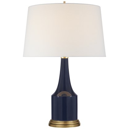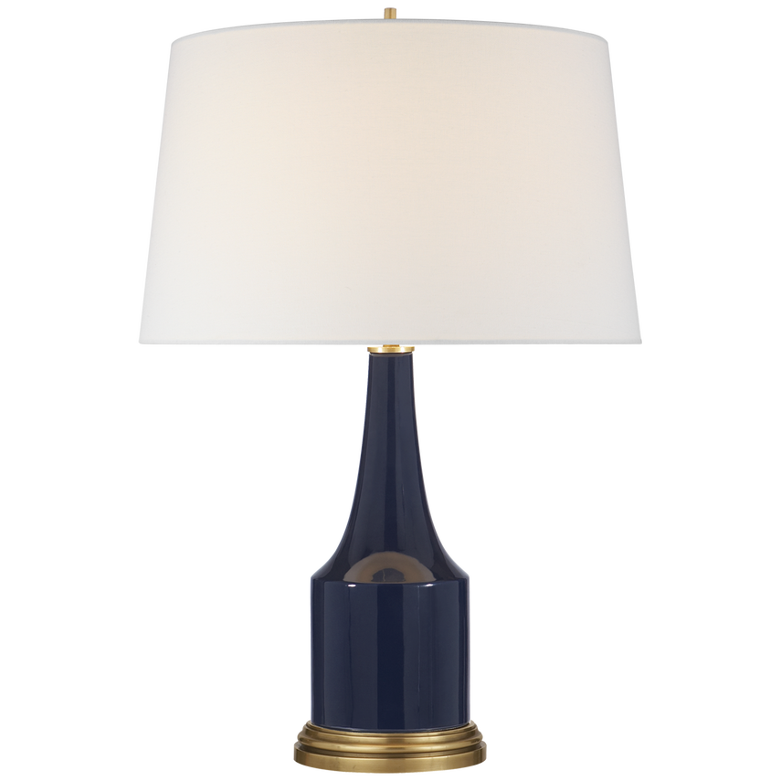Sawyer Tischlampe, Mitternachtsblaues Porzellan mit Leinenschirm