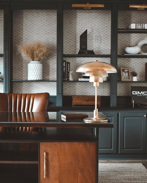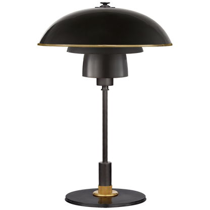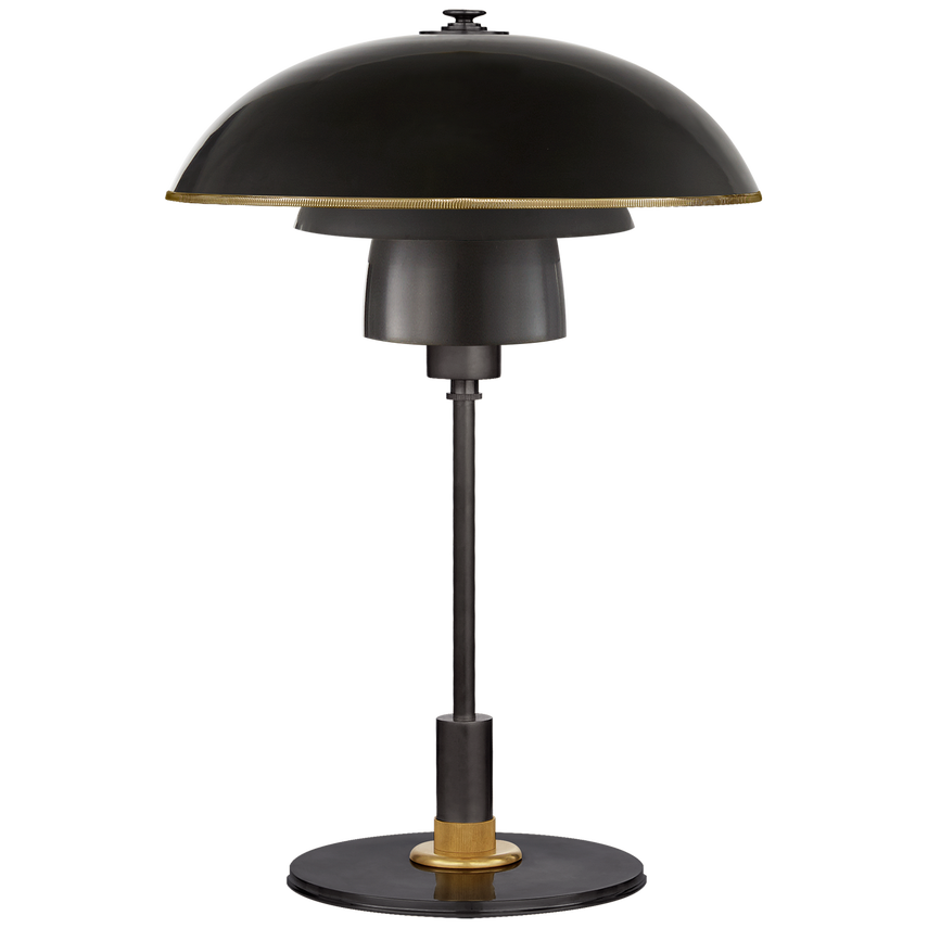 Whitman Schreibtischlampe, Bronze und handpoliertes Antikmessing mit Messingbesatz, Bronzeschirm