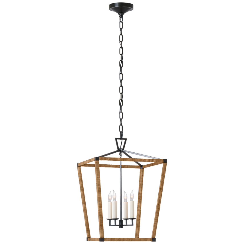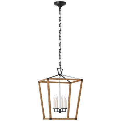Mittlere Laterne Darlana, umwickelt mit gealtertem Eisen und natürlichem Rattan