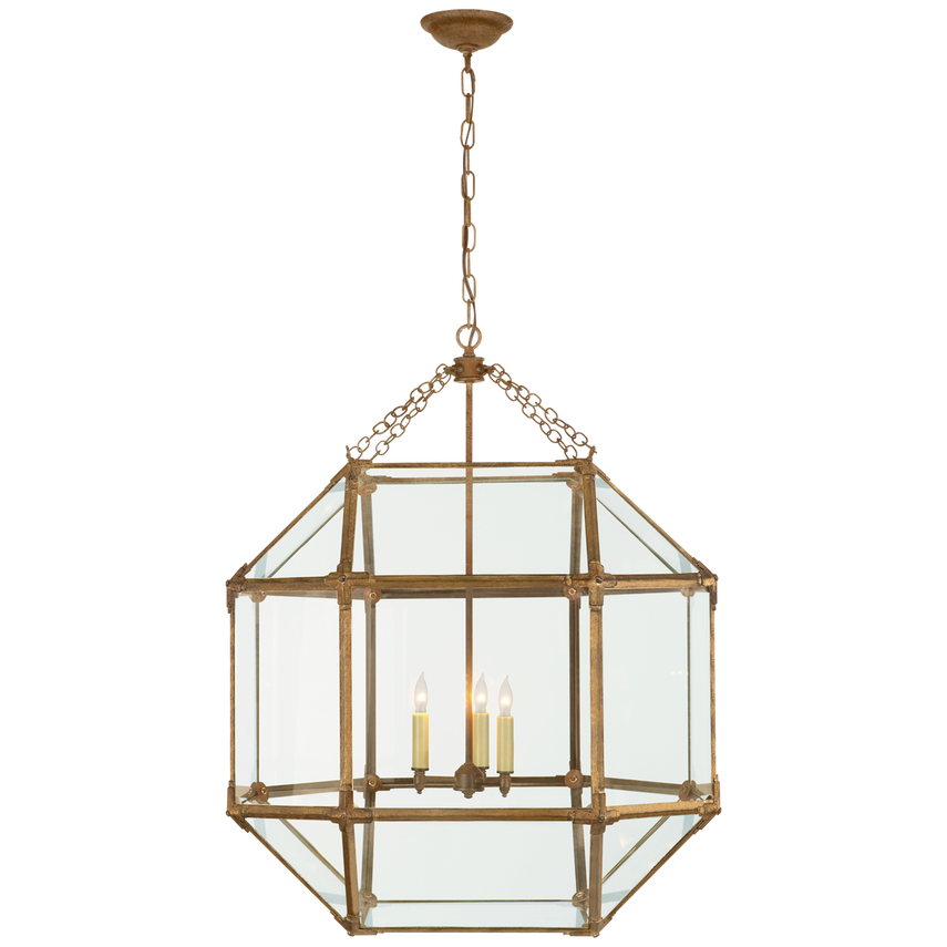 Morris Große Laterne aus vergoldetem Eisen mit Klarglas