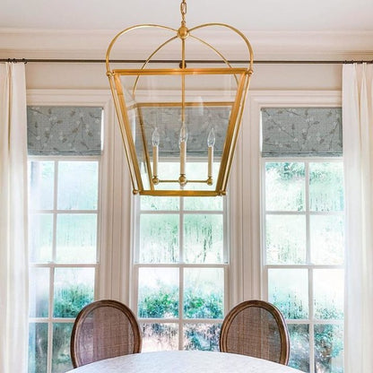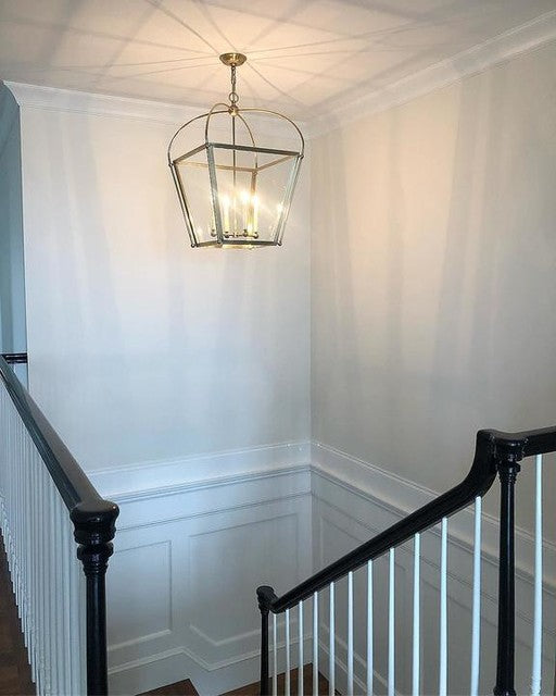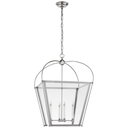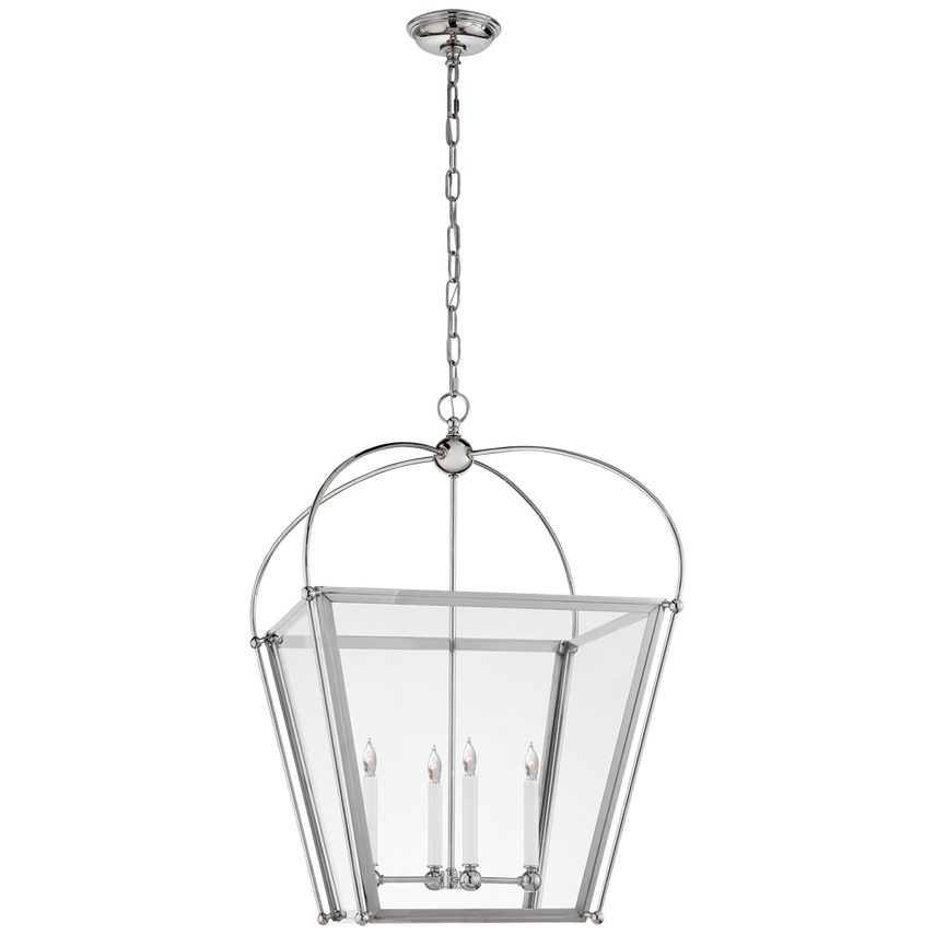 Riverside Laterne, quadratisch, mittelgroß, poliertes Nickel mit klarem Glas