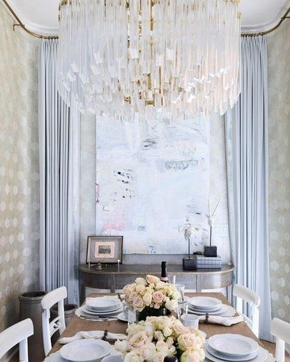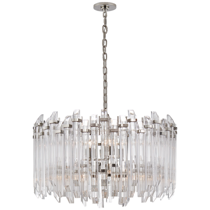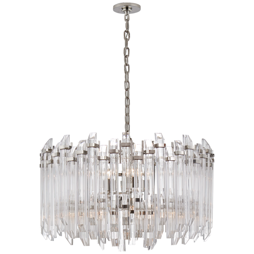 Kronleuchter Adele, groß, breit, Trommel, poliertes Nickel mit klarem Acryl