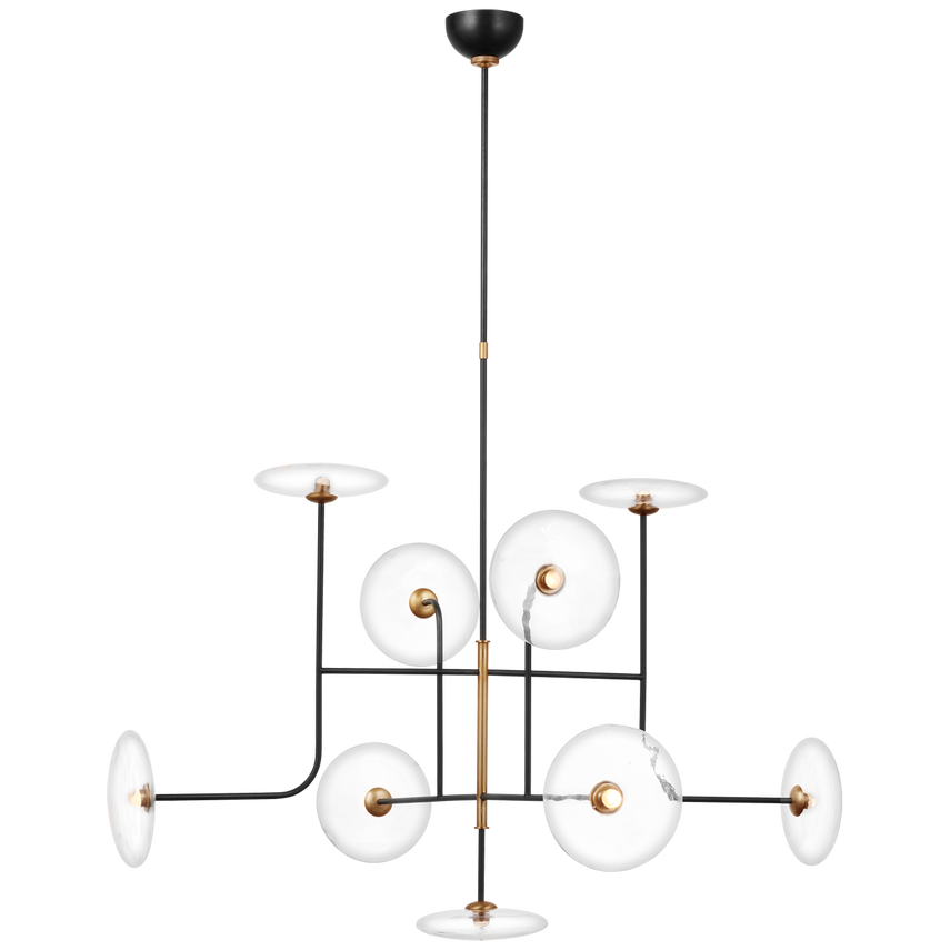 Calvino XL-Kronleuchter aus gewölbtem, gealtertem Eisen und handpoliertem antikem Messing mit klarem Glas