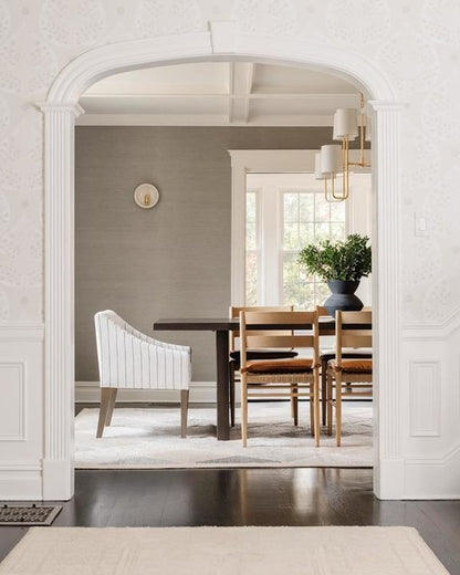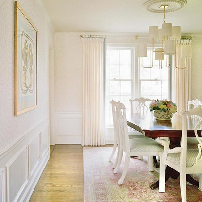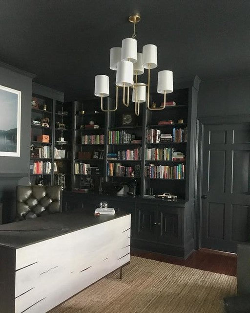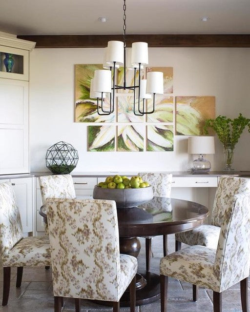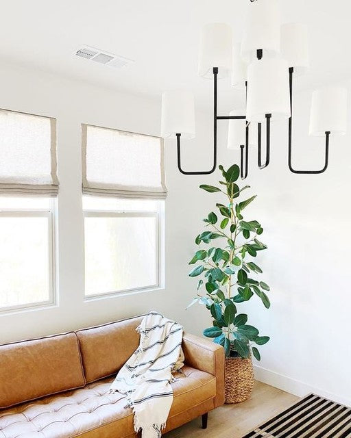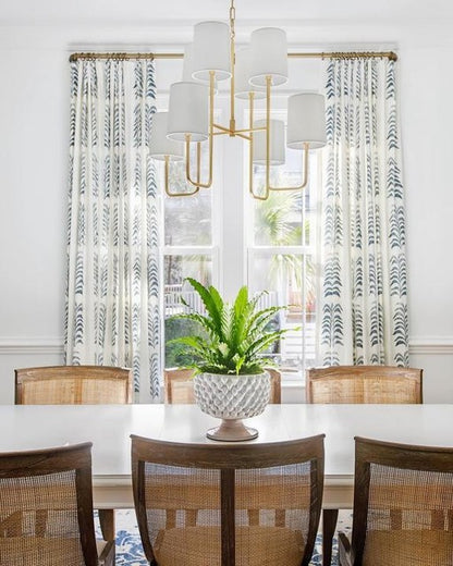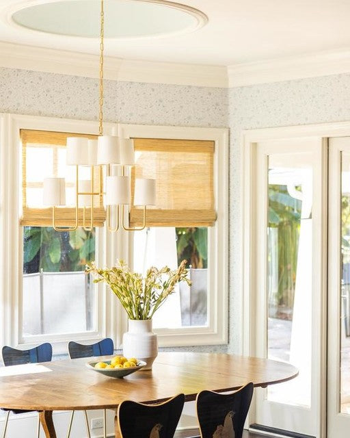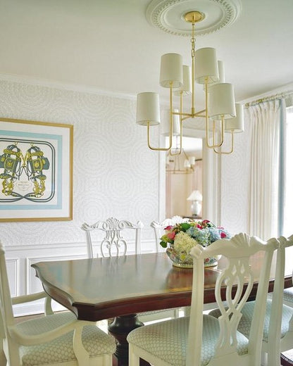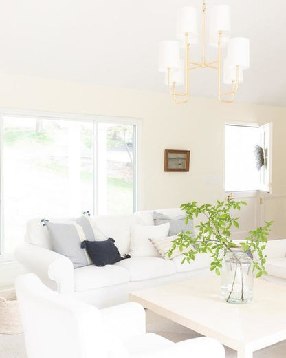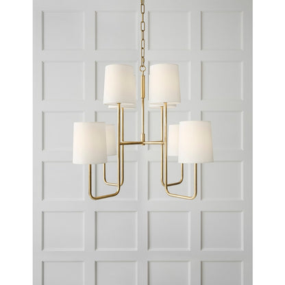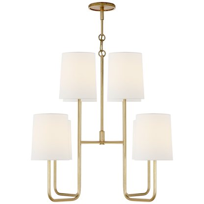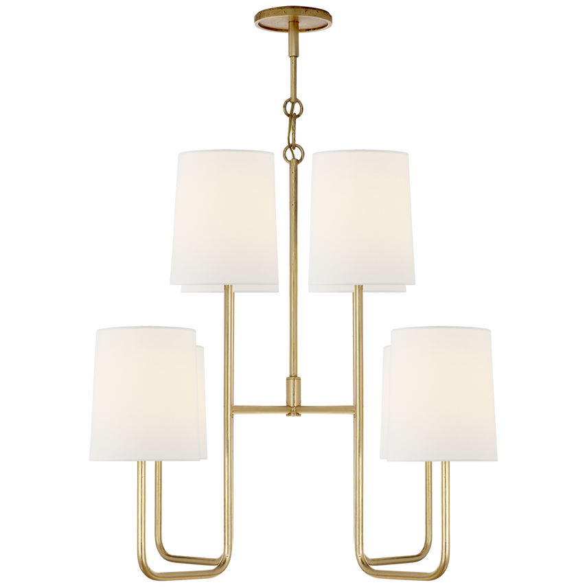 Kronleuchter Go Lightly Medium vergoldet mit Leinenschirmen