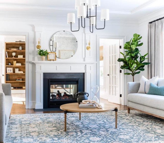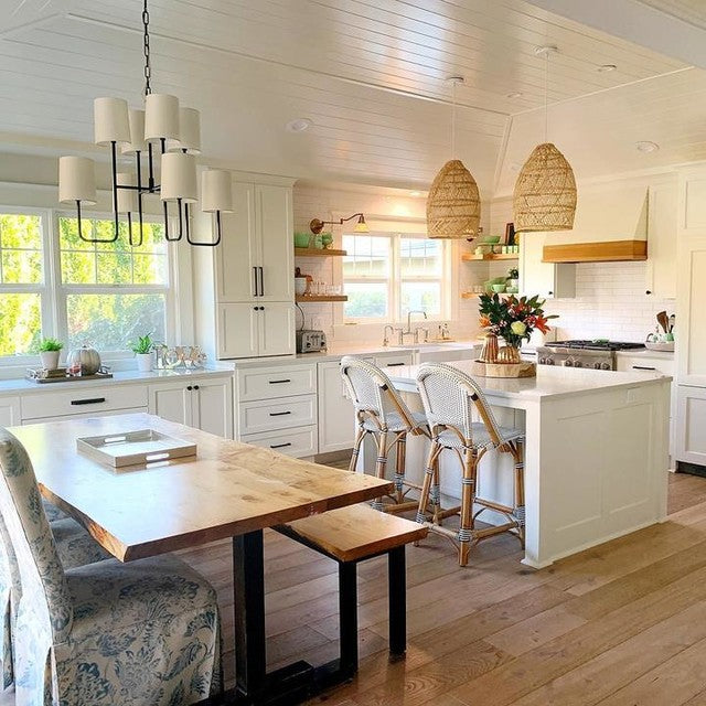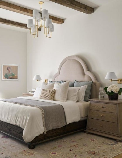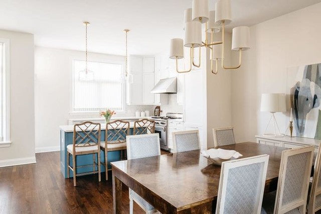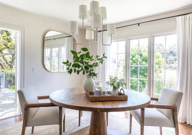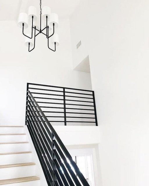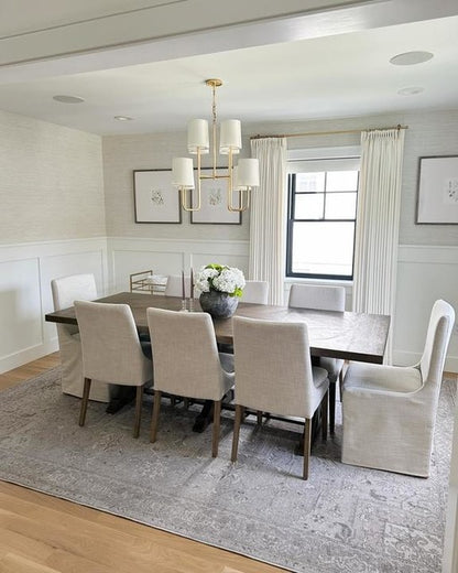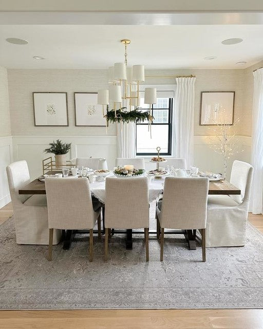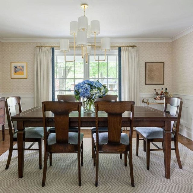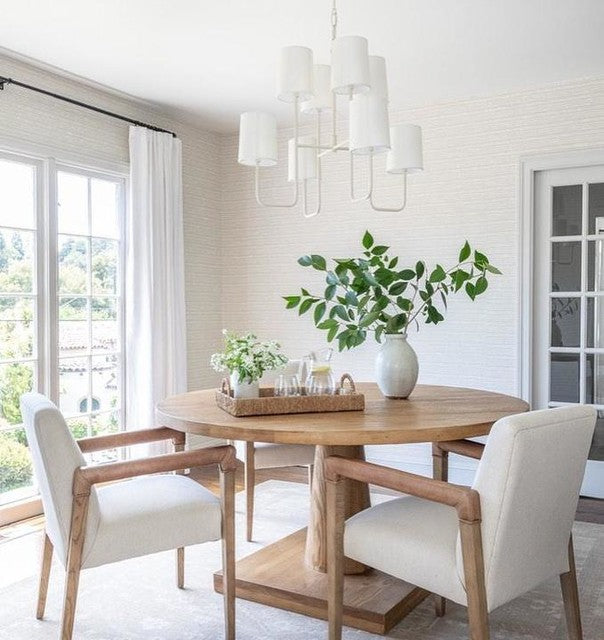 Kronleuchter Go Lightly Medium vergoldet mit Leinenschirmen