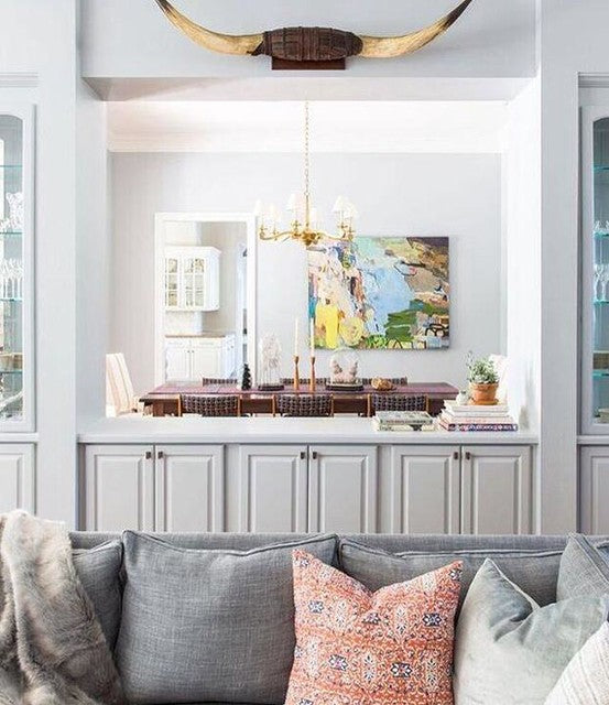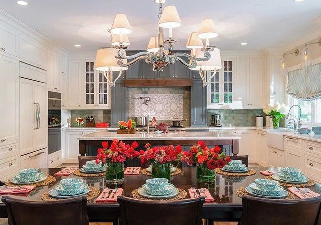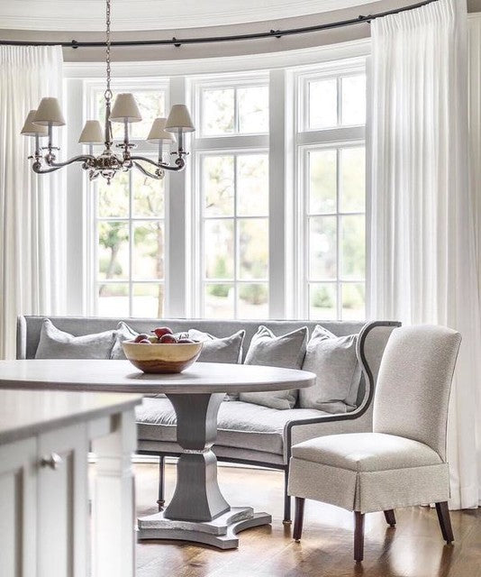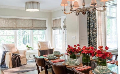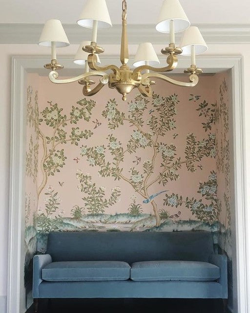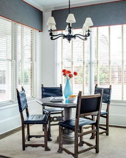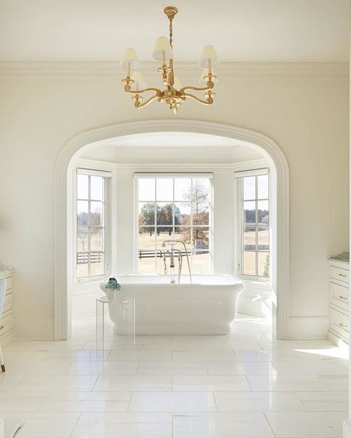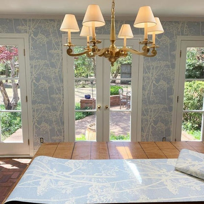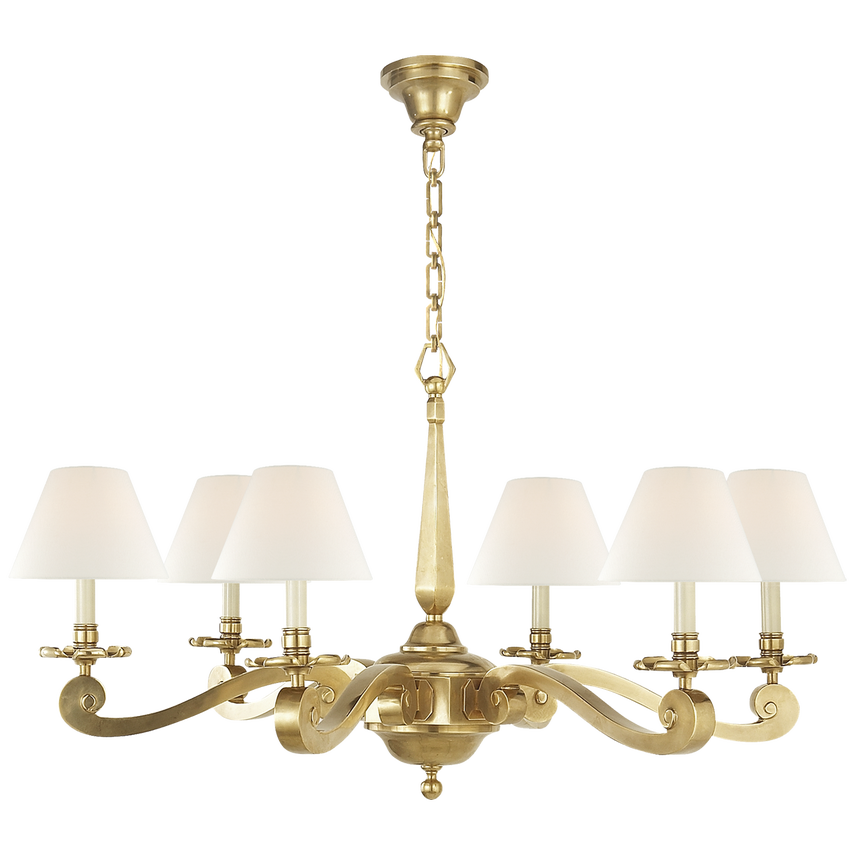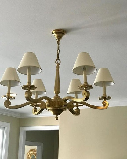 Kronleuchter Myrna Naturmessing mit Leinenschirmen