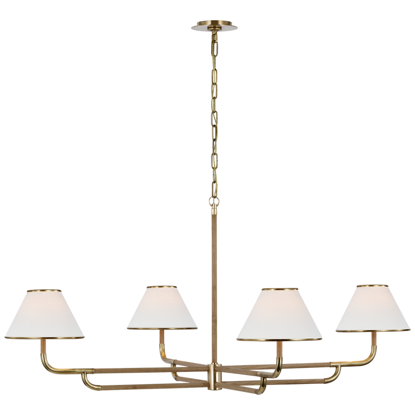 Rigby Grande Kronleuchter, weiches Messing und natürliche Eiche mit Leinenschirm
